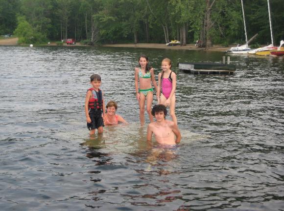 | The lake is across the street directly in front of our home. We own a 30' strip down to the lake. I put up white picket post to make it easy for you to see our property. |